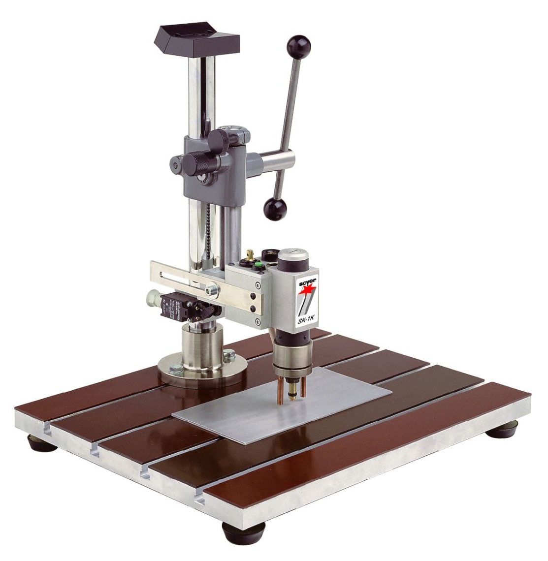 Основательное настольное устройство с ручным управлением, с SK-1K сварочной головкой - самый простой тип стационарной установки с сварочной головой в линейке оборудования SOYER. Главные преимущества – точное позиционирование метизов, компактность, эргономичная конструкция, простое управление и автоматическое заземление с одновременной сваркой на детали, а также высокая эффективность даже с небольшим количеством индивидуальных заготовок.