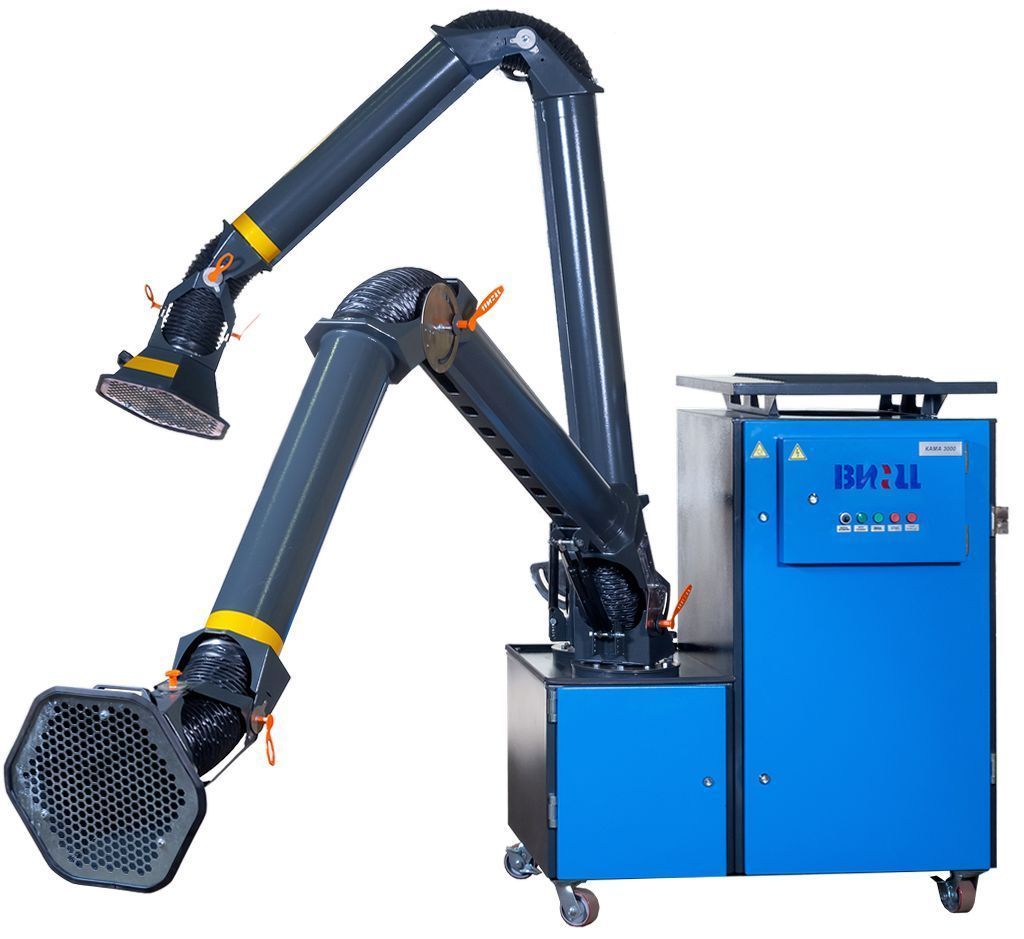 Оснащение установки КАМА 3000: - основной корпус с отсеком вентилятора и фильтровальной камерой, оснащенный общей дверью. - в зависимости от комплектации: одно гибкое вытяжное устройство с внешним каркасом и подшипником; Ф 200 мм., радиус действия 3000 мм. или два гибких вытяжных устройства с внешним каркасом и подшипником; 160 мм., радиус действия 3000 мм. - камера предварительной очистки с отдельной дверью и поддоном-пылесборником, объемом 16 л. - энергоэффективный EC-вентилятор с регулируемой частотой вращения (ручная регулировка), - выдвижной лоток-пылесборник объемом 30 л. (размещен в фильтровальной камере) - фильтр-элемент тонкой очистки, патронного типа (размер 450*600 мм., площадь фильтрации 22 м2, материал полиэстер с PTFE-мембраной. - шкаф управления с кнопками пуск, стоп и регулятором оборотов вентилятора (силы всасывания) - колеса ролики с стопорами. - шумоизоляция отсека вентилятора. - крышка-воздухораспределитель. - автоматическая система регенерации (очистки фильтра), которая включает: фильтр-редуктор, ресивер из нержавеющей стали, воздуховод, воздушный клапан, управляющую электронику. Требуется подвод сжатого воздуха давлением 5,0-10 атмосфер.